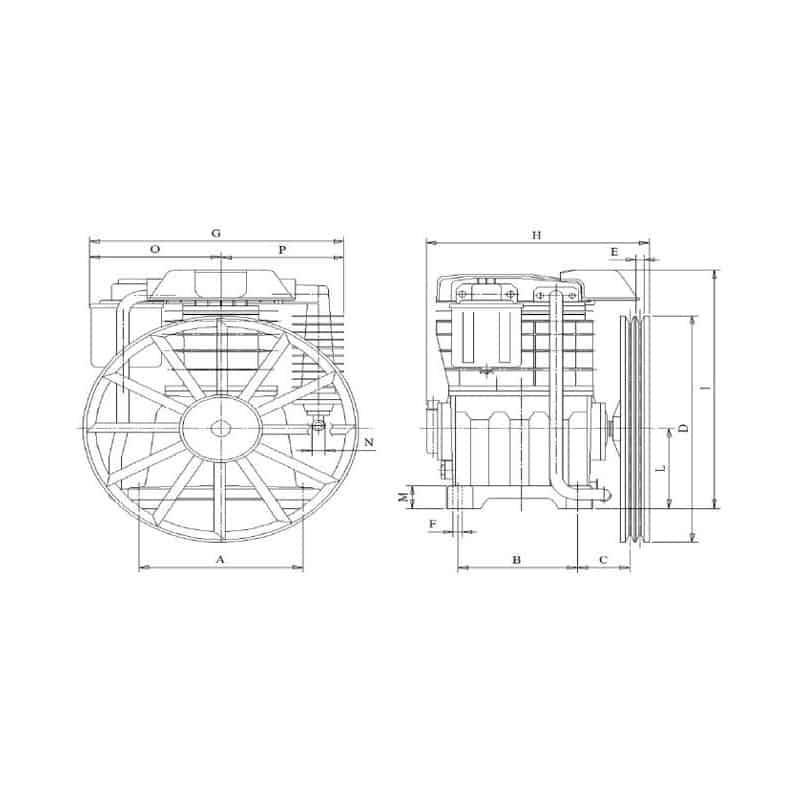 Pumping unit for air compressors Fiac 150-270 Liters lubricated two-stage belt drive.